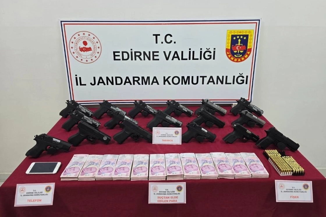 Edirne İl Jandarma Komutanlığı asayiş ekipleri, İpsala ilçesi Hacıköy köyünde İpsala JASAT Timi ve uyuşturucu madde arama köpek unsuruyla K.B. isimli şahsın ev ve eklentilerinde ve iş yerinde icra edilen aramada, 17 adet ruhsatsız tabanca, 17 adet tabanca şarjör, 136 adet tabanca mermisi ve 249 bin 400 lira para ele geçirdi. Ayrıca cep telefonu, 32 adet boş veya çekirdekten ayrılmış mermi kovanı ele geçirilerek el konuldu. Şüpheli şahıs hakkında ise adli işlemler başlatıldı.