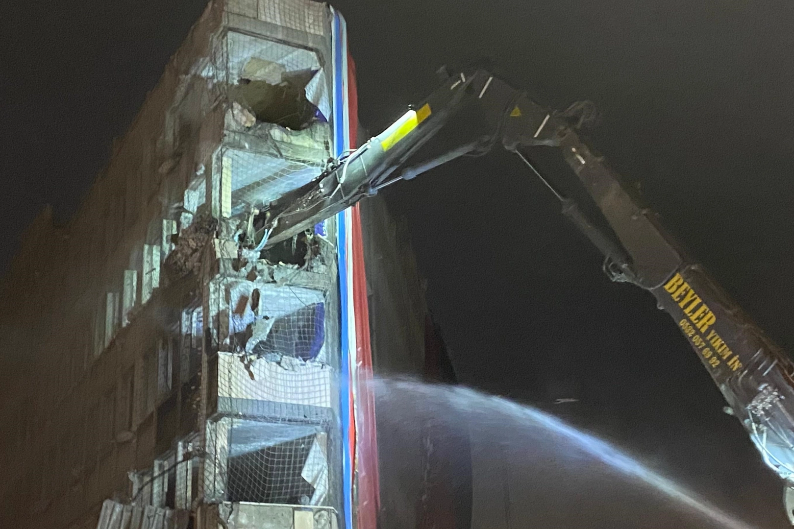Gece saatlerinde başlayan yıkım çalışmaları öncesi çevrede güvenlik tedbirleri sağlandı.