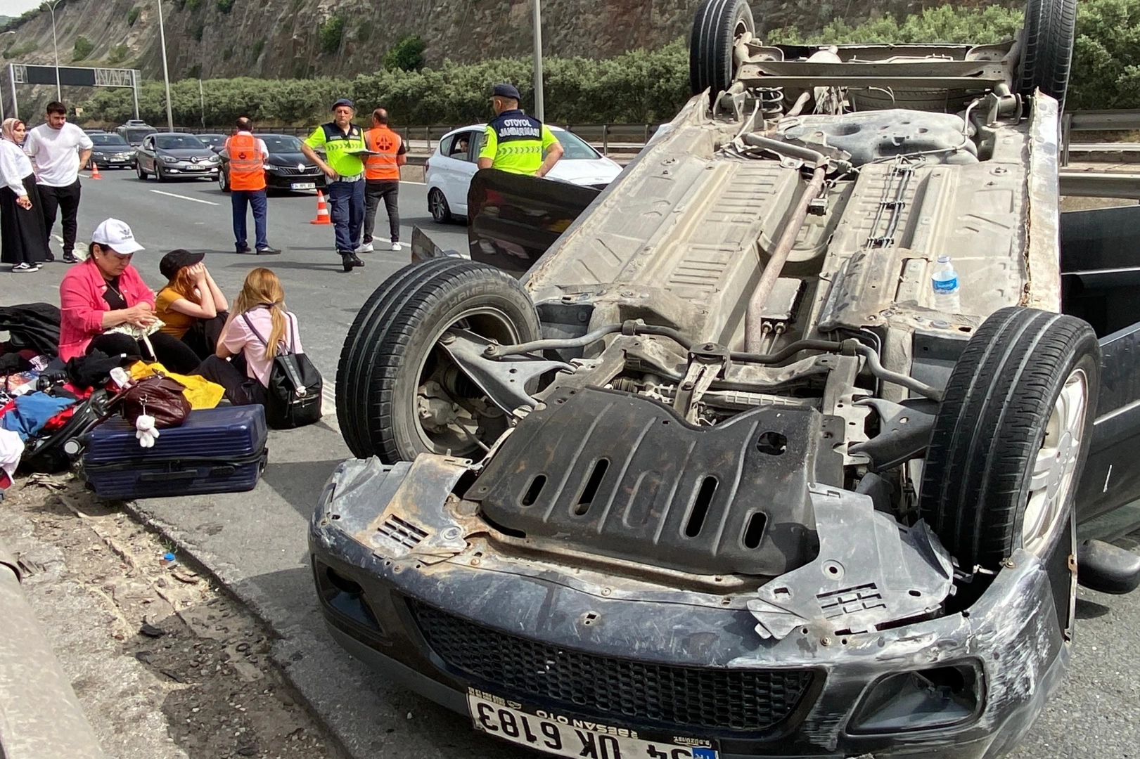 Ters duran araçta bulunan 3 kişi yaralandı. İhbar üzerine olay yerine sağlık, jandarma ve itfaiye ekipleri sevk edildi. Kısa sürede olay yerine gelen sağlık ekipleri, 2 yarılıyı ilk müdahalenin ardından ambulansa aldı. Araçta sıkışan bir kişi ise itfaiye ekipleri tarafından çıkarıldı. Toplam 3 yaralı ambulansa alınarak hastaneye kaldırıldı. Kazayı yara almadan atlatan yolcular ise çaresizce eşyaların önünde oturarak bekledi. Kaza sebebiyle TEM Otoyolu'nun Ankara istikametinde aksama meydana geldi. Aracın yoldan kaldırılması ile yol eski seyrine döndü. Jandarma, olayla ilgili inceleme başlattı.