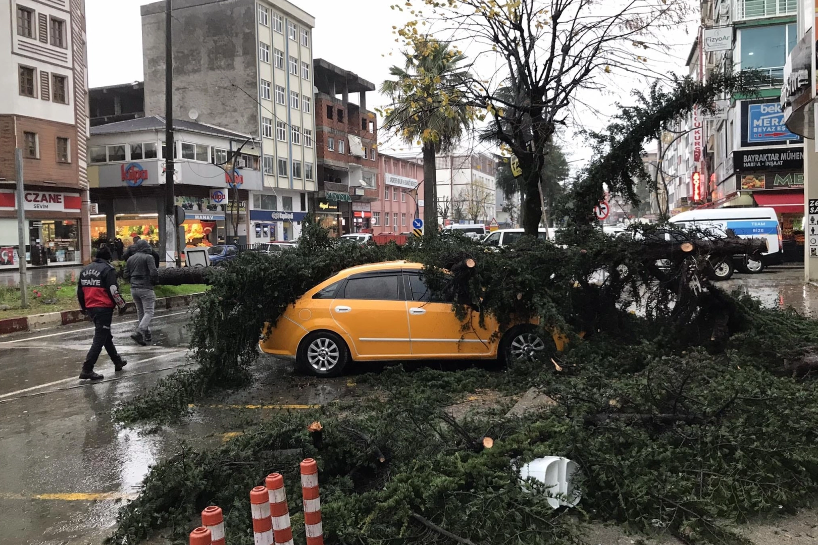 Rize’nin Ardeşen ilçesinde etkili olan fırtına nedeniyle devrilen ağaç taksilere zarar verdi. Ardeşen ilçesinde fırtına nedeniyle bazı ağaçlar devrildi. Ardeşen merkezde bulunan ağaç fırtına nedeniyle devrilerek taksi durağına çarptı. Ağacın devrildiği esnada durakta bulunan taksilerde maddi zarar meydana geldi. O esnada kimsenin bölgeden geçmemesi ise facianın önüne geçti. Olayın ardından vatandaşlar itfaiye ekiplerine durumu bildirdi. Olay yerine gelen itfaiye ekipleri devrilen ağacı keserek yolu açtı. Bölgede bulunan başka bir ağaç ise devrilme riskine karşı kesildi.