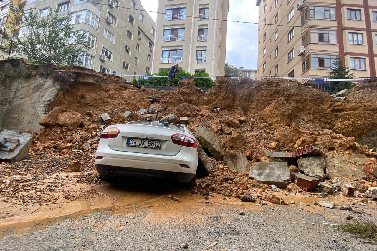 Duvarla birlikte kaldırım da park halindeki 3 otomobilin üzerine devrilirken, olayda yaralanan olmadı. Olay anı saniye saniye güvenlik kamerasına yansıdı Olay, saat 02.45 sıralarında Maltepe Feyzullah Mahallesi Köroğlu Beyi Sokak’ta meydana geldi. Edinilen bilgiye göre, sokak üzerinde bulunan 6 katlı bir binanın istinat duvarı, sağanak yağışın ardından henüz belirlenemeyen bir nedenle çöktü. Çökme ile birlikte kaldırım da duvarla beraber yola devrilerek park halindeki 3 otomobilin üzerine düştü. Araçlarda büyük çapta hasar meydana geldi. İhbar üzerine olay yerine polis, itfaiye ve zabıta ekipleri sevk edildi. Polis ekipleri çevrede güvenlik önlemi alırken, zabıta ekipleri de sokakta araç ve yaya trafiğini kontrollü şekilde sağladı. Çökme anı binanın güvenlik kamerasına yansırken, şans eseri yaralanan olmadı.