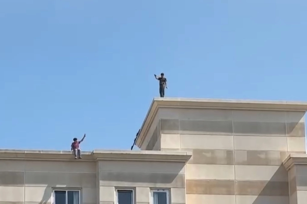 Maltepe'de bir öğrenci yurdunun çatısına çıkan genç tehlikeli hareketlerde bulunurken yanındaki arkadaşı ise o anları cep telefonu ile kayda aldı.