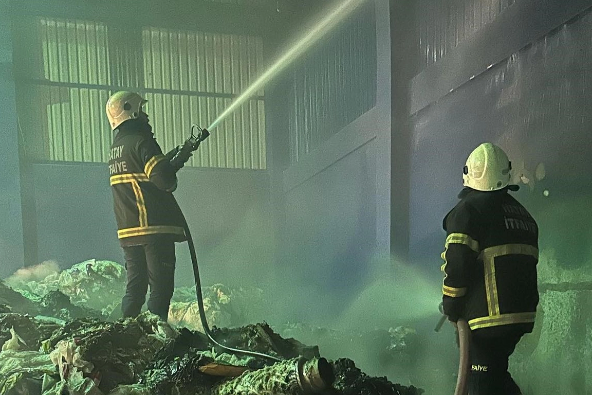 Hatay'ın Reyhanlı ilçesinde geri dönüşüm fabrikasında yaşanan yangın itfaiye ekipleri tarafından söndürüldü.