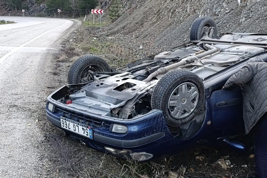 Bolu'da gizli buzlanma nedeniyle sürücüsünün kontrolünden çıkan otomobil takla attı.