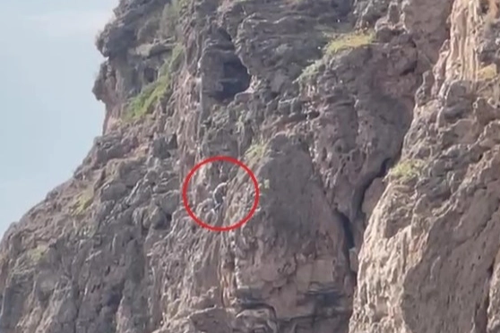 Antalya'da bir kişinin yaklaşık 30 metrelik sarp kayalıklardan oluşan falezlerin orta kısmında gören bir vatandaşlar şahsın mahsur kaldığını düşündü.