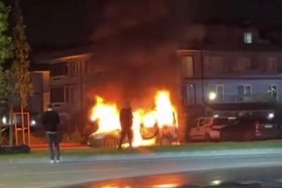 Sakarya’nın Serdivan ilçesinde gece saatlerinde alevlere teslim olan hafif ticari araç kullanılamaz hale geldi.