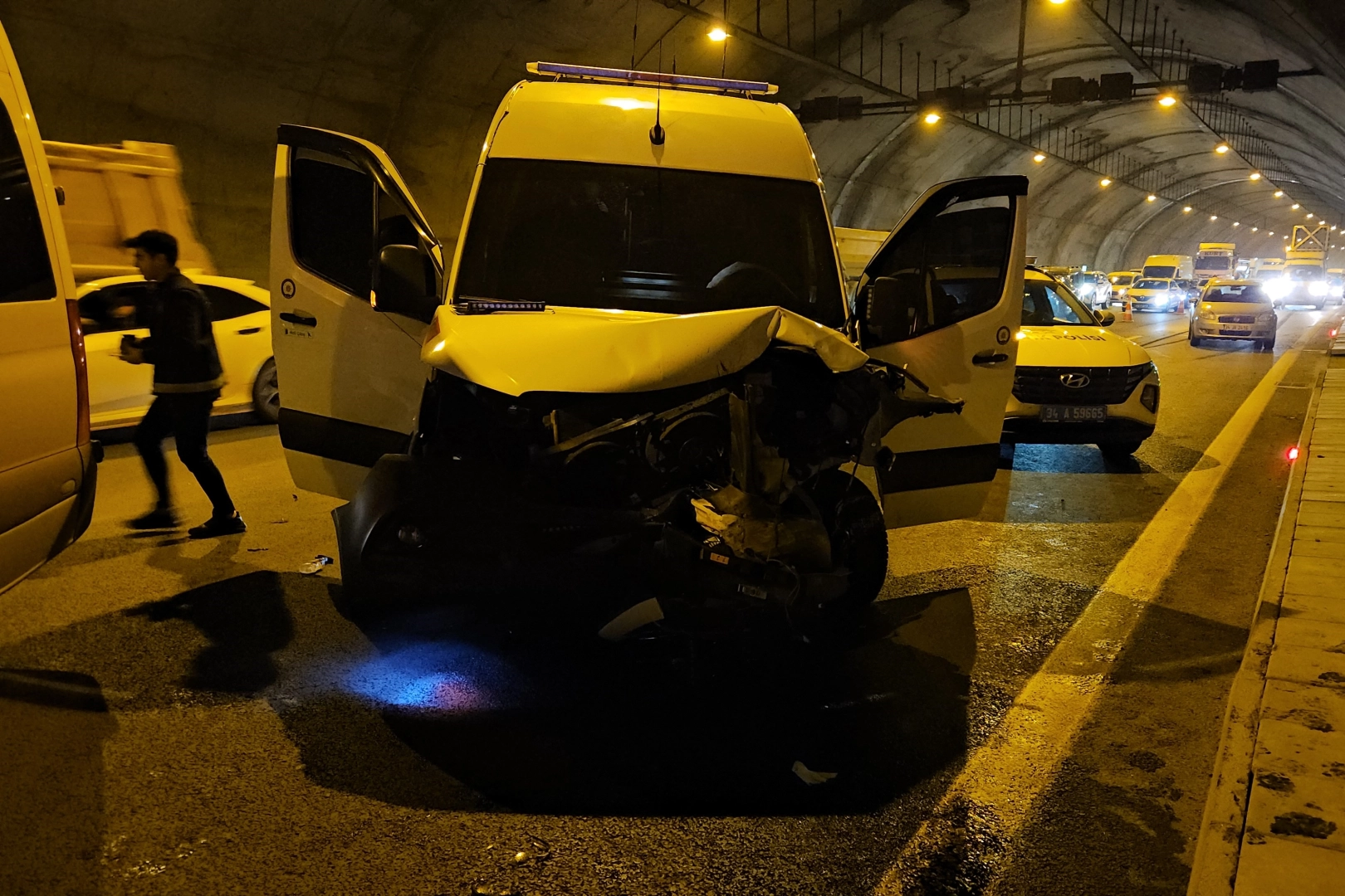 Sultangazi'de hakim ve savcıları taşıyan servis minibüsü, kontrolsüz şerit değiştiren otomobille çarpıştı. Kazada minibüste bulunan hakim ve savcılardan iki kişi hafif şekilde yaralandı. Kaza nedeniyle tünelde trafik yoğunluğu oluştu.