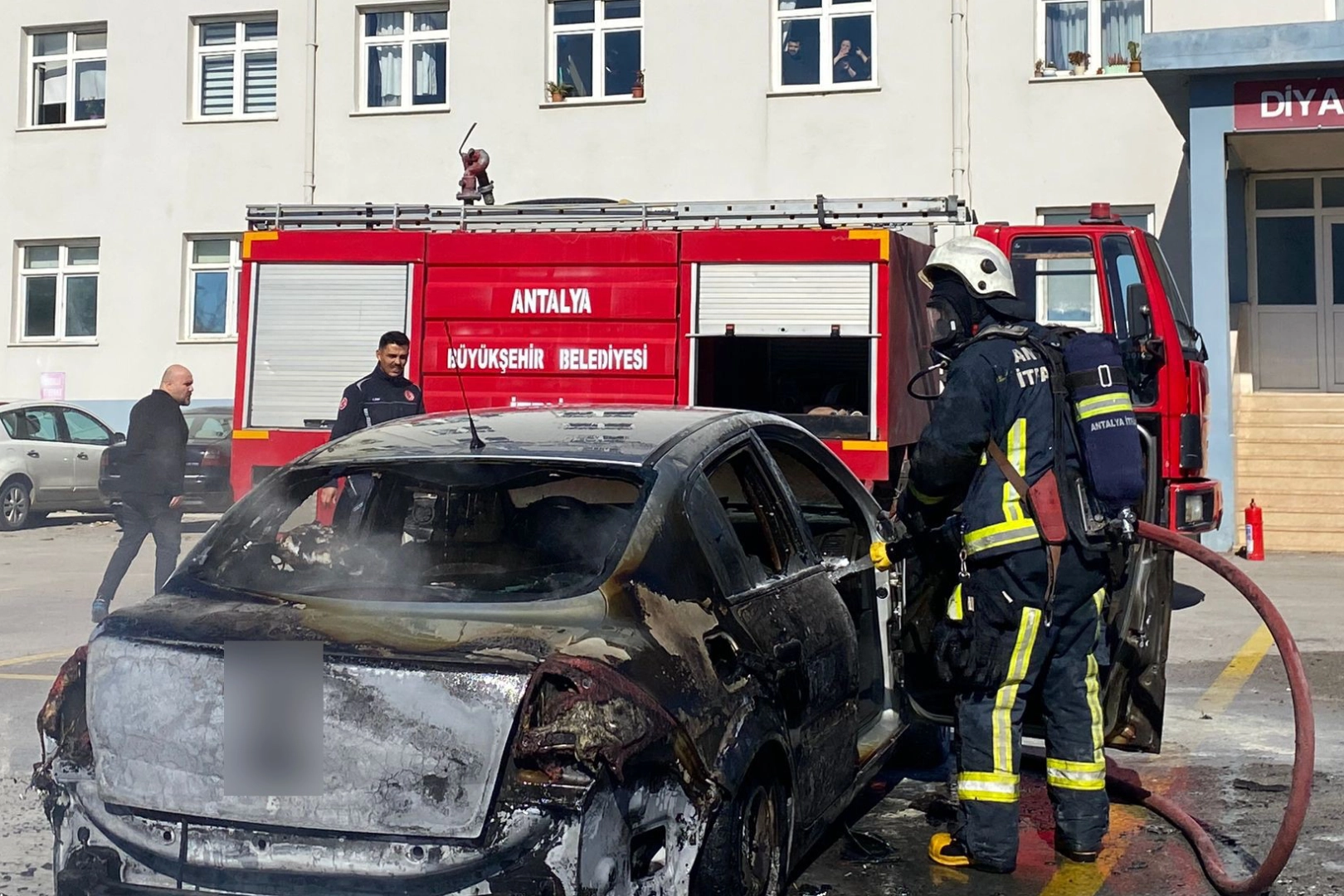 Antalya’nın Serik ilçesinde hastane otoparkında bir araçta çıkan yangın söndürüldü.