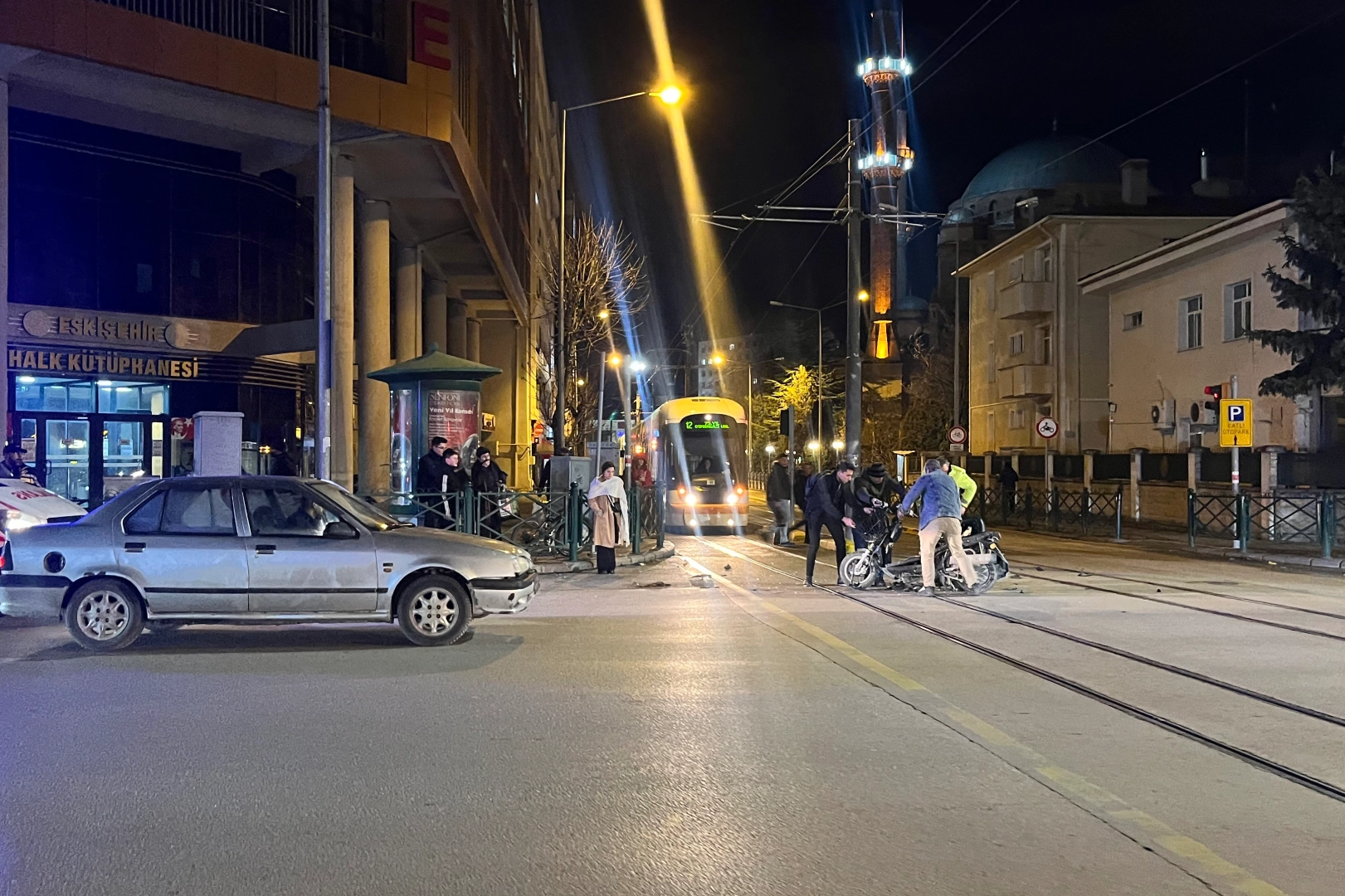 Eskişehir’de otomobil ile elektrikli bisikletin çarpışması sonucunda meydana gelen trafik kazasında şans eseri yaralanan olmazken, tramvay seferleri aksadı.