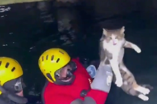 Olay yerine gelen itfaiye ekipleri denize girerek, kediyi mahsur kaldığı yerden kurtardı. Sağlık durumunun iyi olduğu görülen kedi doğal yaşam alanına bırakıldı. Kedinin kurtarılma anları ise kameraya yansıdı.