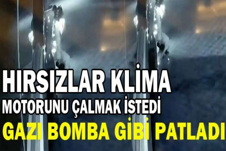 Olay, merkez Osmangazi ilçesi Geçit Mahallesi'nde meydana geldi. Edinilen bilgiye göre, 2 şüpheli şahıs dükkan önündeki klima motorunu gözüne kestirdi. Bir süre çevrede gözetleme yapan şüpheliler en uygun zamanda motoru çalmaya çalışırken klima motorunun içinde bulunan gaz patladı. Paniğe kapılan şüpheliler hemen bölgeden uzaklaşarak kaçarken o anlar işyerinin güvenlik kamerasına yansıdı.