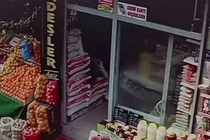 Çarpmanın etkisiyle manava ait meyve kasaları devrilirken meyveler yere saçıldı. Olay, çevredeki güvenlik kameralarına saniye saniye yansıdı. Kazada yaralanan olmadığı öğrenildi.