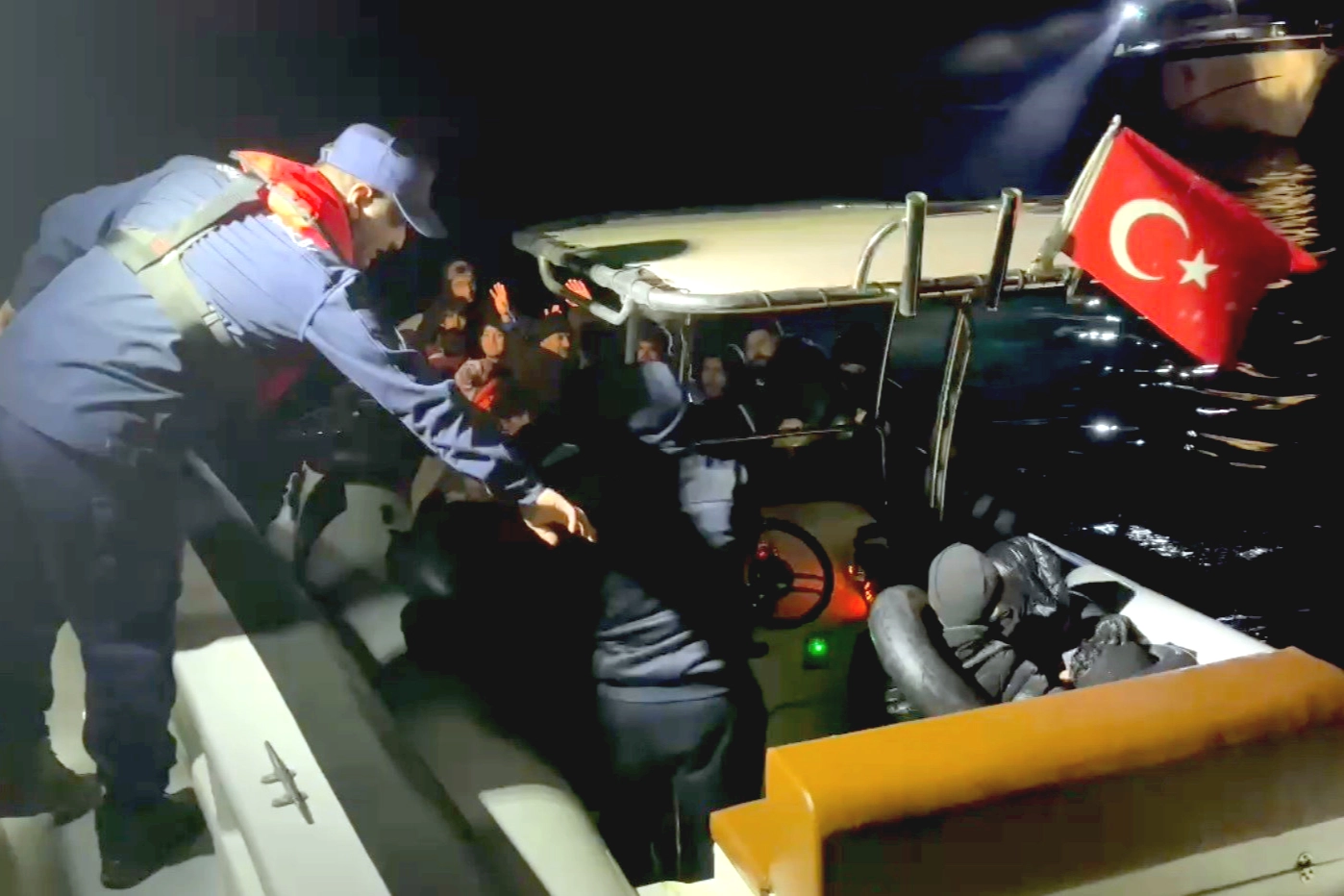 3 Şubat günü saat 22.30’da, Sahil Güvenlik İnsansız Hava Aracı (İHA) tarafından fiber karinalı lastik bot içerisinde bir grup düzensiz göçmen olduğu tespit edildi. Bölgeye sevk edilen Sahil Güvenlik Botları (TCSG-30, KB-22) tarafından durdurulan hareketli bot içerisinde yapılan kontrollerde, 11’i çocuk toplam 39 düzensiz göçmen yakalanarak kıyıya çıkarıldı. Aynı botta yapılan incelemelerde, göçmen organizatörlüğü yaptığı değerlendirilen 1 göçmen kaçakçısı şüphelisi ile ülkeyi yasal olmayan yollarla terk etmeye çalıştığı tespit edilen 1 şahıs yakalanarak gözaltına alındı. Yakalanan düzensiz göçmenler, işlemlerinin tamamlanmasının ardından İl Göç İdaresi Müdürlüğüne sevk edilirken; yakalanan göçmen kaçakçısı şüphelisi ve yasa dışı yollarla yurt dışına çıkmaya çalışan şahıs hakkında adli süreç başlatıldı.