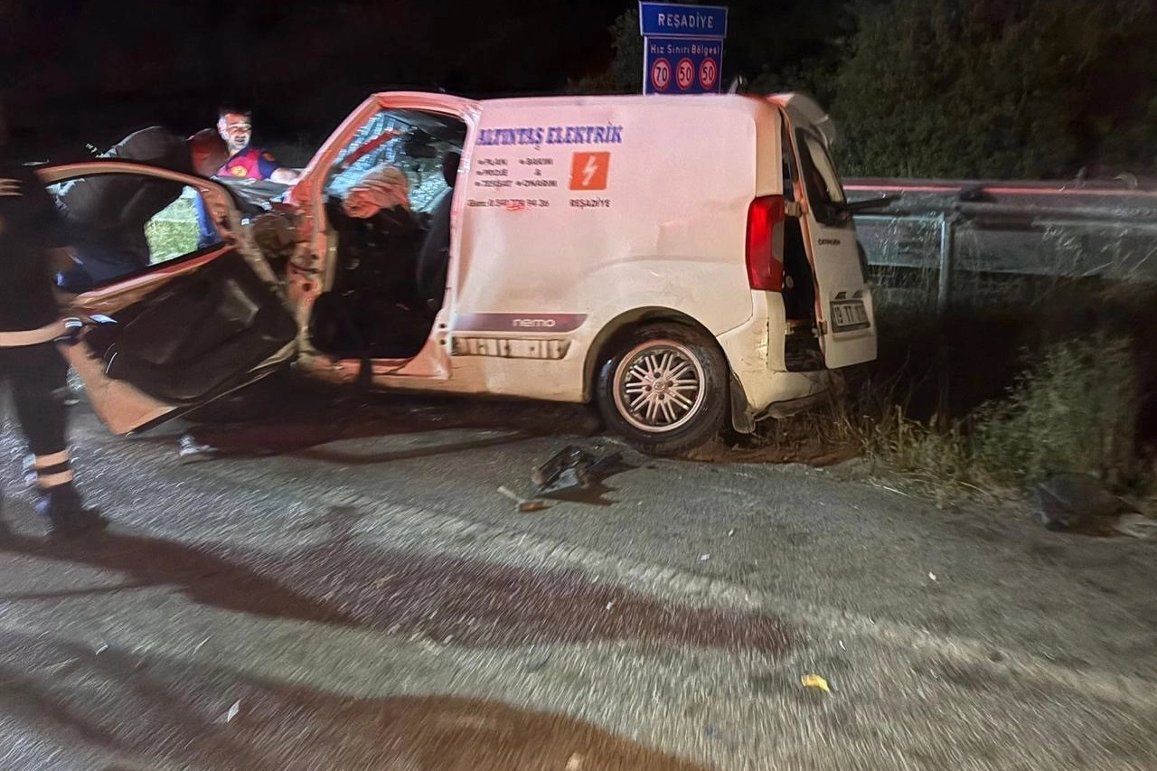 Kaza, gece saatlerinde Reşadiye Soğukpınar mevkisinde meydana geldi. Edinilen bilgilere göre, Koyulhisar istikametinden Niksar yönüne seyir halinde olan sürücüleri öğrenilemeyen 09 BR 939 plakalı Kia marka araç, ters şeritten gelen 19 TT 375 plakalı Citroen marka otomobil ile kafa kafaya çarpıştı.