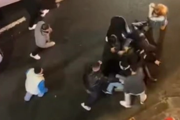 Kısa sürede kavgaya dönüşen olayda taraflar birbirlerine tekme ve yumrukla saldırdı. Yaşanan o anlar cep telefonu kamerası ile görüntülendi. Görüntülerde, iki grubun kavga ettiği ve vatandaşların ayırmaya çalıştığı, taraflardan birinin yerde tekmelendiği görülüyor.