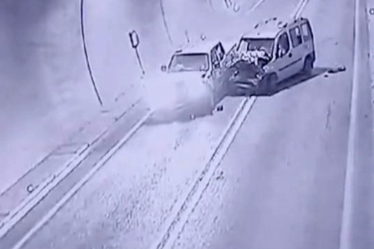 Artvin-Erzurum karayolunun 7. kilometresindeki tünelde, iki kamyonetin çarpışması sonucu 7 kişinin yaralandığı kazanın güvenlik kamerası görüntüleri ortaya çıktı.