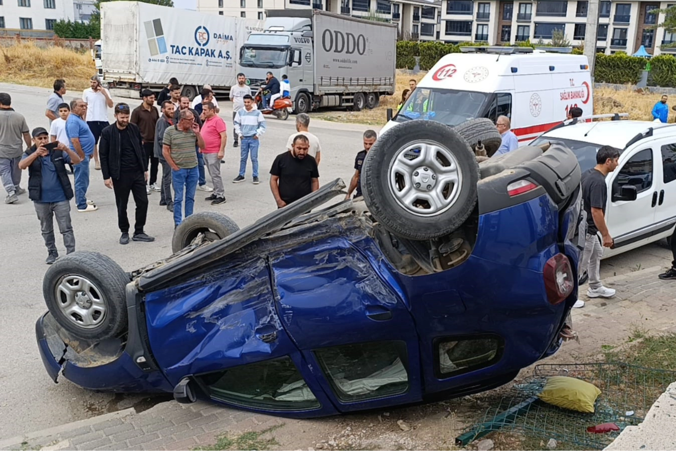 Edinilen bilgiye göre, Ertuğrulgazi Mahallesi Kozluca Yolu Sokak üzerinde seyir halinde olan Furkan G. (28) yönetimindeki 16 AGB 301 plakalı hafif ticari araç ile Divan Sokak üzerinde seyir halinde olan Uğur T. (19) yönetimindeki 16 ANM 959 plakalı suv araç iki sokağın kesiştiği kavşakta çarpıştı. Kaza sonucu suv araç takla atarak ters durdu. Kazada sürücüler ile suv araçta yolcu konumunda bulunan Rabia T. (16) yaralandı. Haber verilmesi üzerine olay yerine gelen sağlık ekiplerinin ilk müdahalesinin ardından yaralılar ambulanslarla İnegöl Devlet Hastanesi Acil Servisine kaldırılarak tedavi altına alındı. Kazayla alakalı soruşturma başlatıldı.