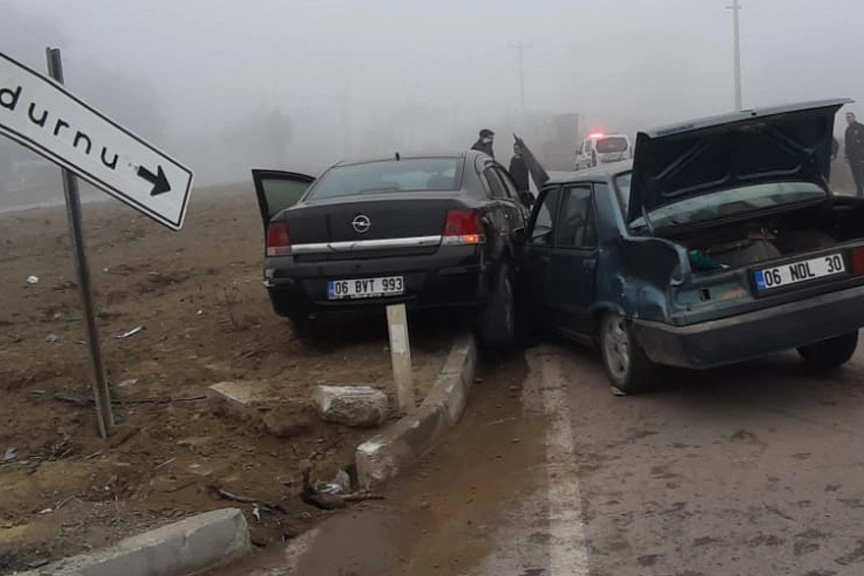 Kaza, Bolu-Mudurnu kara yolunda Mudurnu ilçesinin giriş kısmında bulunan dönel kavşakta meydana geldi. Edinilen bilgiye göre, sisin etkili olduğu bölgede İsmail B. yönetimindeki 06 NDL 30 plakalı Fiat Tofaş marka otomobil ile Osman K. idaresindeki 06 PVT 933 plakalı Opel marka otomobil çarpıştı.