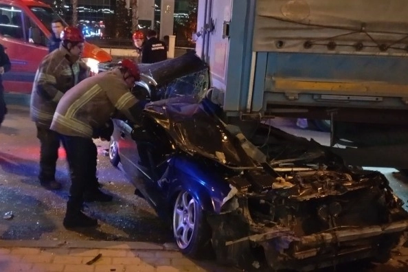 Öte yandan, kazaya ait güvenlik kamerası görüntüleri ortaya çıktı. Görüntülerde otomobilin hızla ilerlediği, çarpışmanın ardından kontrolden çıkarak savrulduğu ve park halindeki tırın altına girdiği anlar saniye saniye yer aldı.