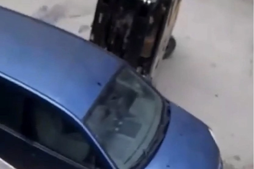 Aracın sahibini bulamayan esnaf, çare aradı. Esnaf, forklift ile aracı yerinden kaldırıp başka bir yere koydu.