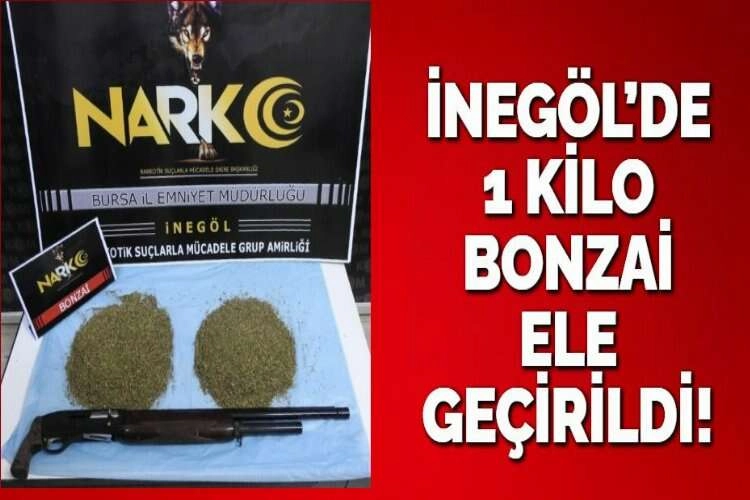 Operasyonda 1 kilo 96 gram bonzai ele geçirildi. Olayla ilgili bir kişi gözaltına alınırken, 2 şahıs ise her yerde aranıyor. İnegöl Narkotik Suçlarla Mücadele Grup Amirliği ve İnegöl KOM Grup Amirliği ekipleri, yasadışı silah ve uyuşturucu ticaretinin önlenmesine yönelik operasyonlarına devam ediyor. İnegöl’de bir evde uyuşturucu satışı yapıldığını ve yüklü miktarda uyuşturucu madde getirildiğini tespit eden ekipler operasyon için düğmeye bastı. Evde yapılan aramalar neticesinde 1 kilo 96 gram bonzai ve 1 adet ruhsatsız av tüfeği ele geçirildi. Evde bulunan şüpheli D.K. yakalanırken, olay ile ilgilisi olduğu tespit edilen O.Ç. ve S.Ç. aranıyor.