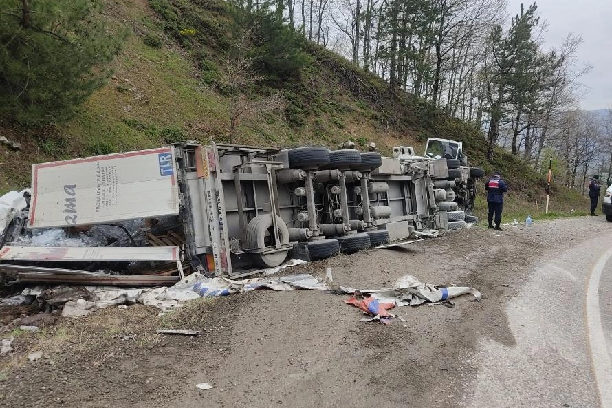 Domaniç istikametinden İnegöl'e seyir halinde olan Murat B.(39) yönetimindeki 16 BUT 870 plakalı su yüklü tır, yokuş aşağı inerken frenlerinin patlaması sonucu sürücüsünün kontrolünden çıktı. Yoldan çıkan tır yamaca devrildi. Kaza yerine 112, jandarma ve itfaiye arama kurtarma ekipleri sevk edildi. Kaza sonucu yaralanan sürücü, tırın camı kırılarak ekiplerce kurtarıldı.