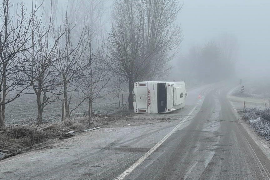 Kaza, saat 07.00 sıralarında Yeni Akçakavak köyü Karacaağaç-Bahçeköy bağlantı yolu mevkisinde meydana geldi. İsmail D. yönetimindeki 14 AK 225 plakalı Akpiliç firmasına ait servis midibüsü, yoldaki buzlanma nedeniyle kontrolden çıkarak yan yattı. Kazada sürücü ile 9 işçi yaralandı. İhbar üzerine bölgeye sağlık ve jandarma ekipleri sevk edildi. Yaralılar şehirdeki hastanelere sevk edildi.