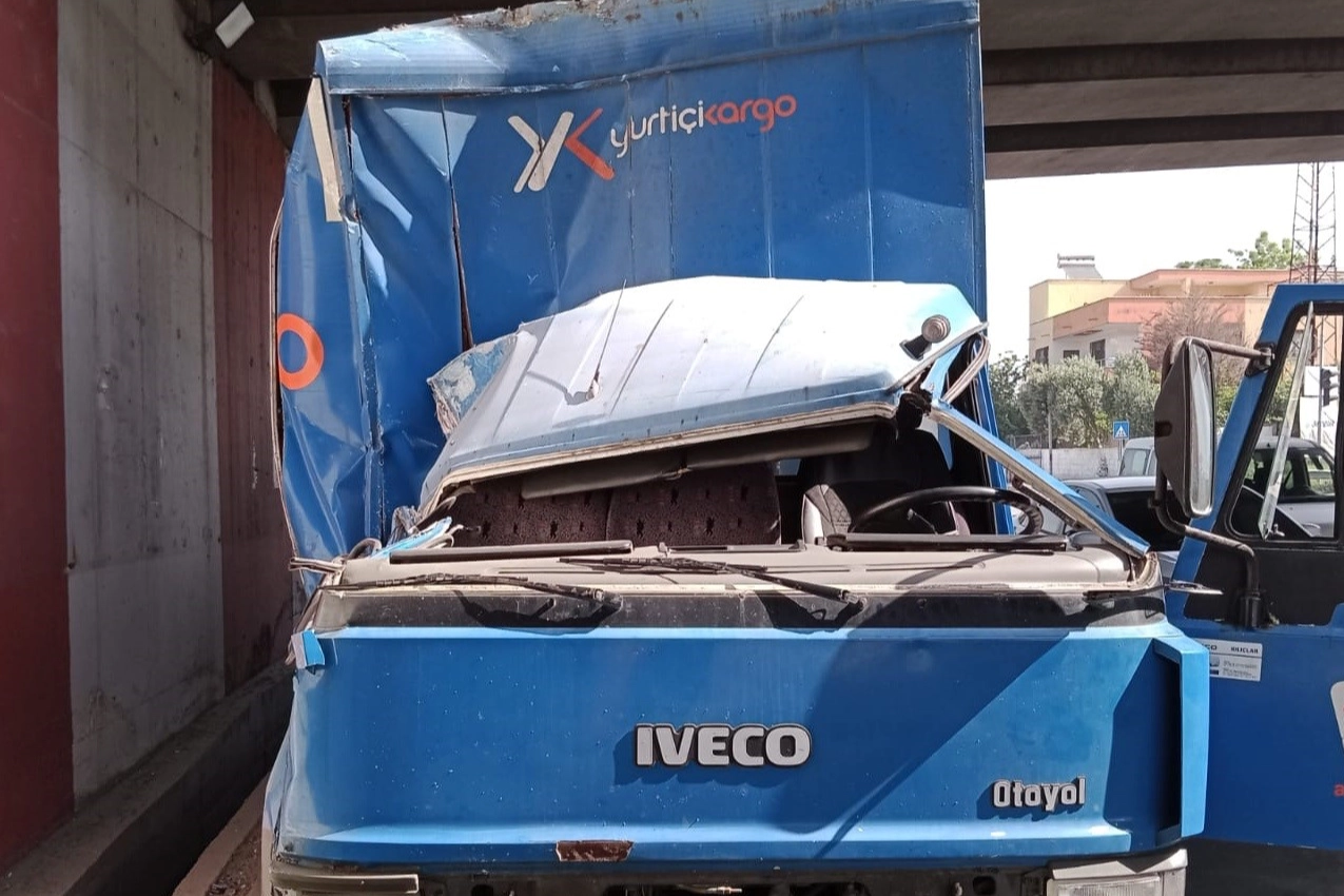 Hatay Dörtyol ilçesinde, işçi servisiyle çarpışan Yurtiçi kargo kamyonu hurdaya döndü.
