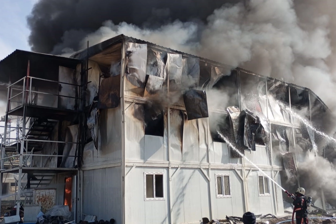 Malatya'da rezerv alan inşaat şantiyesinde çalışan işçilerin konakladığı konteynerlerde yangın çıktı.