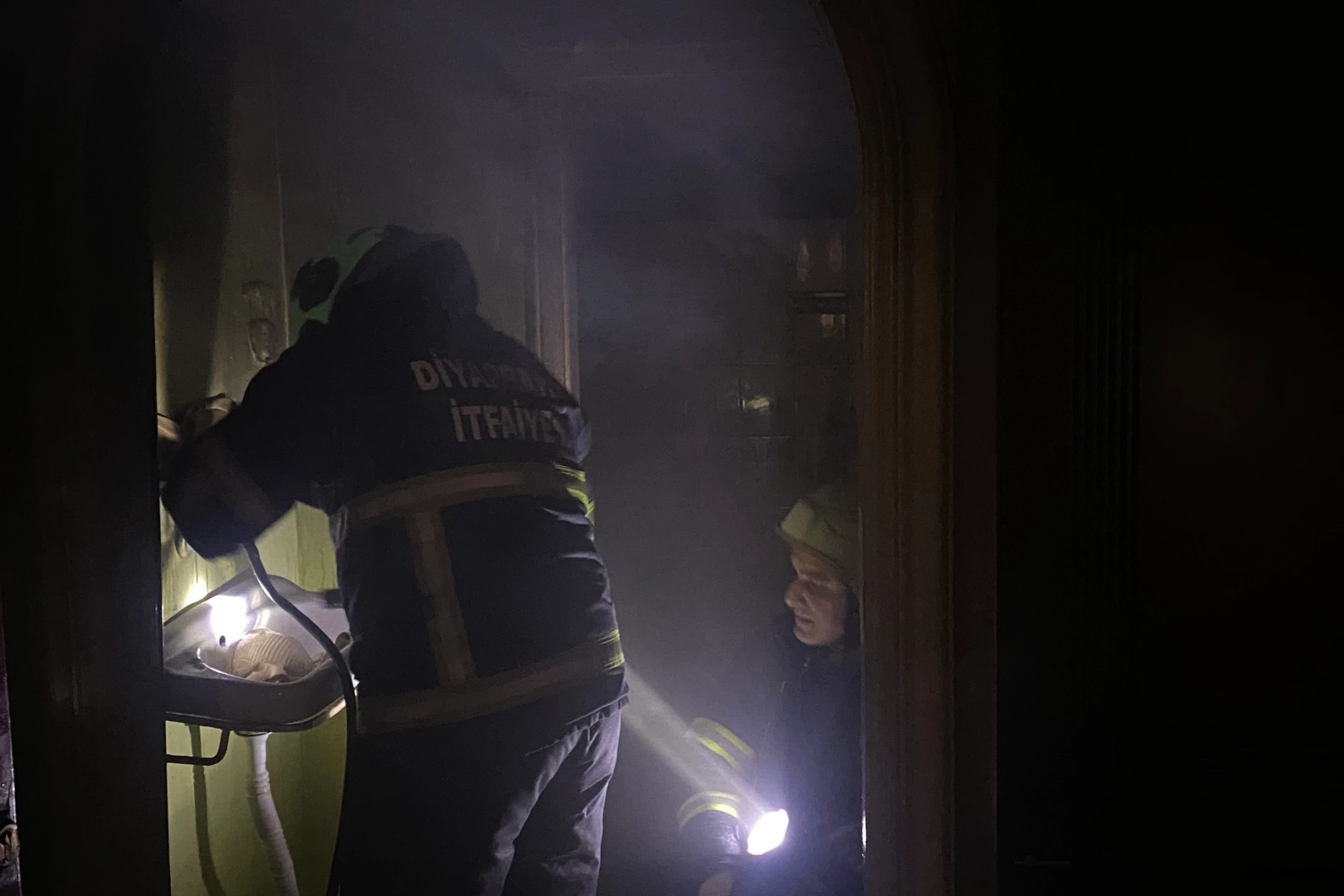 Merkez Kayapınar ilçesi Huzurevleri Mahallesi 23.Sokak’ta bir binanın 6’ıncı katında kalan yaşlı çiftin banyoda yaktığı odun sobası nedeniyle evde yangın çıktı.