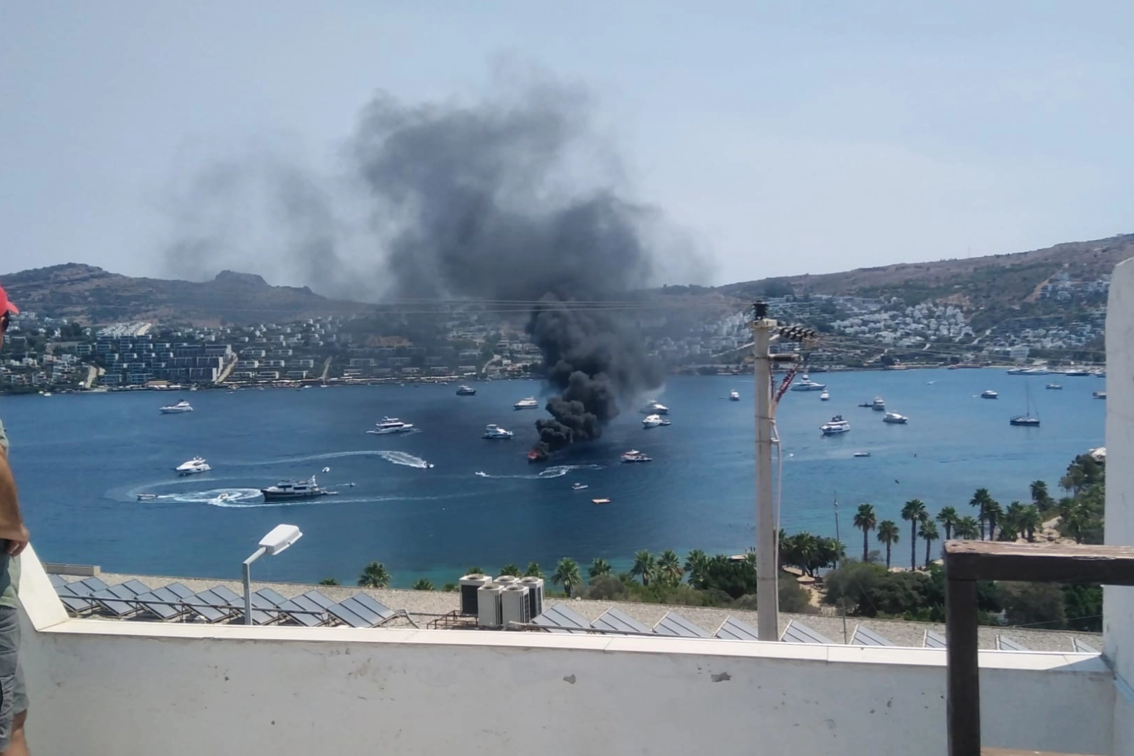 Tekne kısa sürede alev topuna dönerken, içeride bulunan 1 kişi çevredeki botlar yardımıyla kurtarıldı.