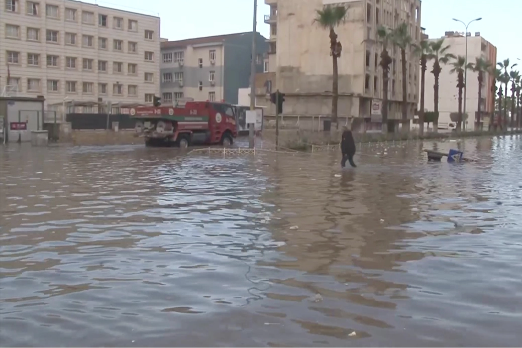 Meteorolojinin şiddetli yağış uyarısıyla birlikte Hatay’ın İskenderun ilçesi hafta sonunu yağışlı geçirdi. İskenderun ilçesinde akşam saatlerinde fırtınayla birlikte etkili olan şiddetli yağış caddeleri göle çevirdi. Deprem sonrası yer yer 1 metreyi bulan çökmelerin yaşandığı İskenderun sahili, denizde dalgaların boyunun 5 metreyi bulmasıyla sular altında kaldı. Sular altında kalan bölgeye araç ve yaya girişine izin verilmiyor.