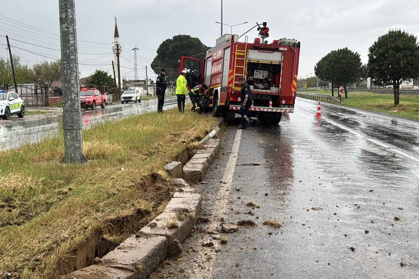 Kazada yaralanan sürücü hastaneye kaldırıldı. Aydın-İzmir otoyolundaki trafik kazasına müdahaleden dönen Germencik İtfaiye Grup Amirliğine bağlı ekipler İncirliova ilçesi girişinde kaza yaptı. Alınan bilgilere göre, İncirliova istikametine seyir halinde olan Turgay Avcu idaresindeki 09 AB 343 plakalı itfaiye aracı, şiddetli yağış nedeniyle direksiyon hâkimiyetini kaybetti.