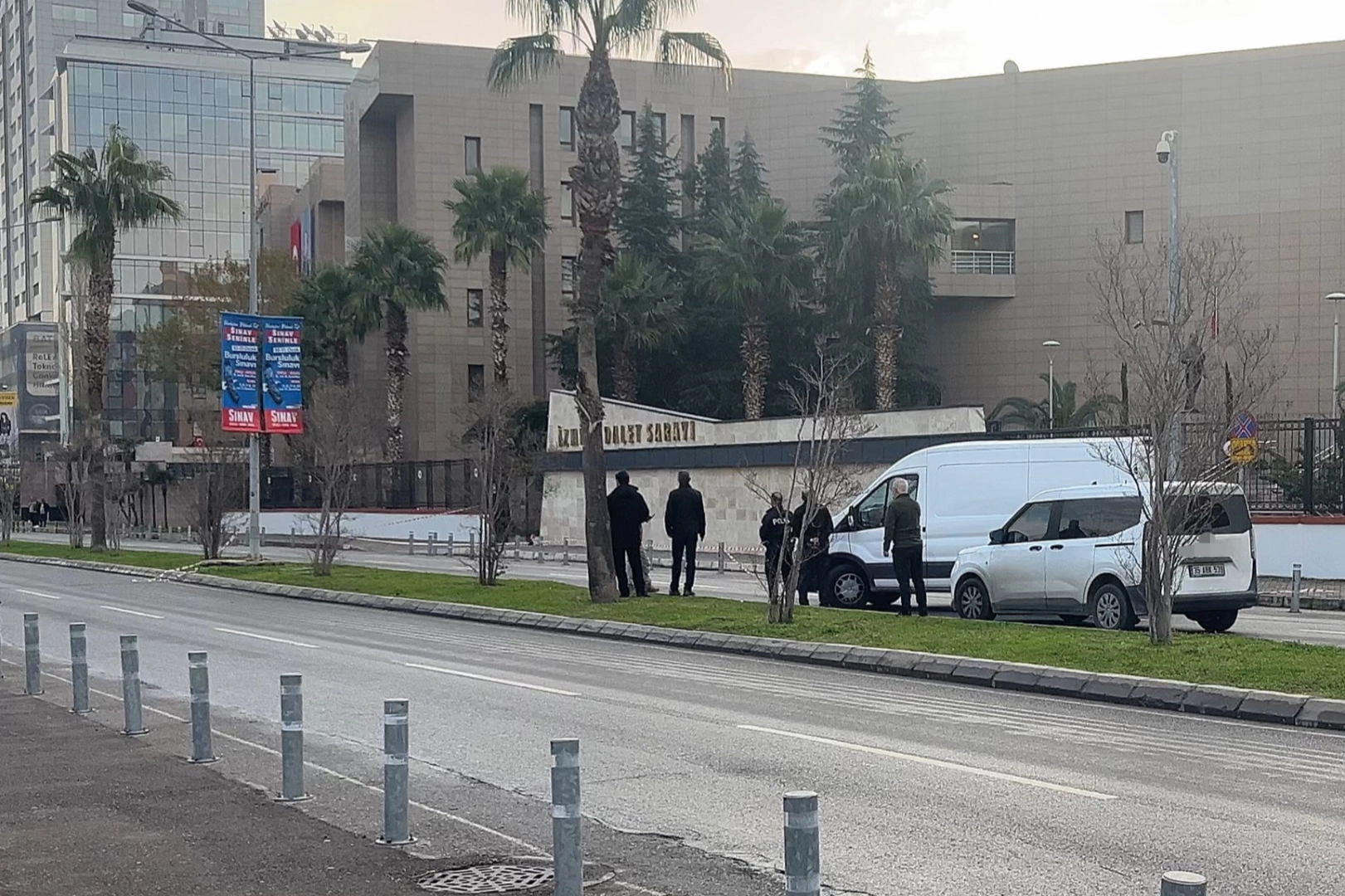 İzmir Adliyesi önünde yol kenarına bırakılmış şüpheli paket paniğe neden oldu.