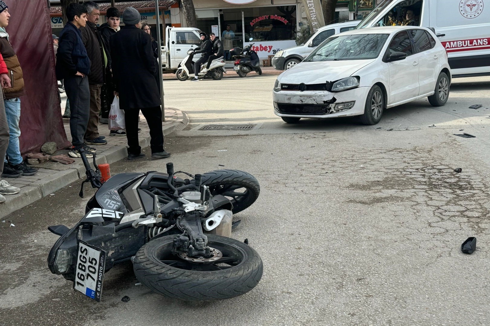Olay, Atatürk Caddesi Otogar girişinde meydana geldi. Edinilen bilgiye göre, Atatürk Caddesi'nde ilerleyen A.D. idaresindeki 16 BGS 707 plakalı motosiklet, tali yola dönüş yapan B.F. yönetimindeki 16 AKS 420 plakalı otomobille kafa kafaya çarpıştı. Çarpmanın şiddetiyle yaklaşık 7-8 metre sürüklenen motosiklet sürücüsü yaralandı. Olay yerine gelen sağlık ekipleri, yaralı A.D.'yi ilk müdahalenin ardından ambulansla İznik Devlet Hastanesine kaldırdı. Yaşanan kaza anı saniye saniye güvenlik kameralarına yansırken, polisin kazayla ilgili tahkikatı sürüyor.