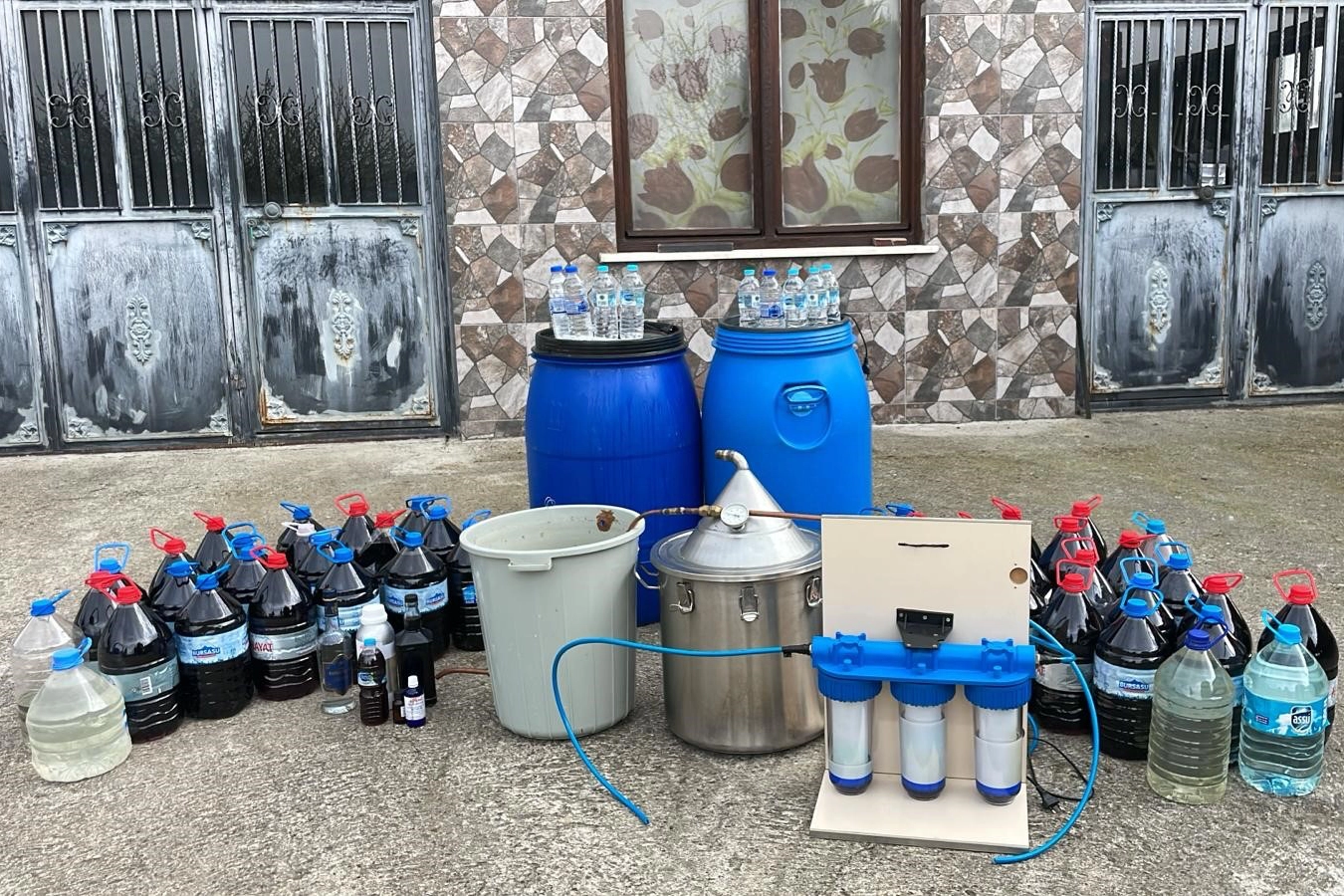 Çanakkale İl Jandarma Komutanlığı ekiplerince, Yenice ilçesine bağlı Hıdırlar Köyünde ikamet eden M.B.’nin evine operasyon düzenlendi. Operasyonda M.B.’nin ev ve eklentilerinde yapılan aramada 450 litre sahte şarap, 15 litre etil alkol, 5 litre el yapımı sahte rakı, 1 litre anason yağı, alkollü içki damıtma ve arıtma düzeneği, ayı postu, doldurulmuş karaca başı ve dağ keçisi boynuzu ele geçirildi.