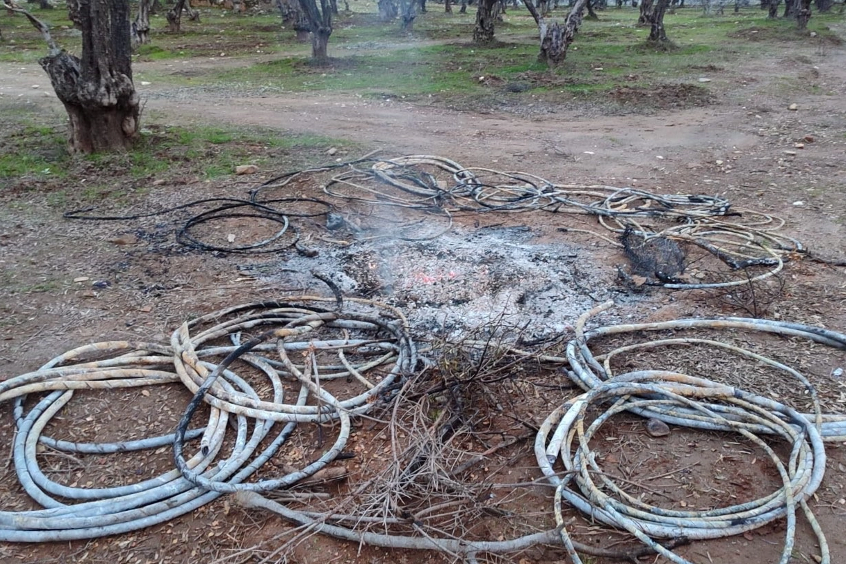 Aydın’ın Germencik ilçesinde kamu kurumuna ait 190 metre enerji nakil kablosunu çalan şahıslar, kabloları yakınca jandarma ekipleri tarafından yakalandı.