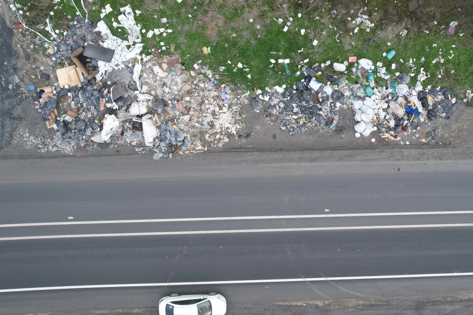 Arnavutköy Hadımköy’de bulunan Fahri Korutürk Caddesi ve ana caddeye bağlanan yan yollar ve yeşil alanların da yer aldığı koridor adeta çöplüğe dönmüş durumda. Toprak karayolu seviyesinde bulunan yan yollar bile kaçak hafriyat dökümüne açık hale gelmiş durumda. Bir kamyonetin kasasındaki malzemeleri yol kenarına bıraktığı anlar cep telefonu kameralarıyla görüntülendi. Ayrıca bölge, dron kamerasıyla havadan görüntülendiğinde cadde kenarının, sokak aralarının ve yeşil alanların moloz alanına dönüştüğü açıkça görülüyor.