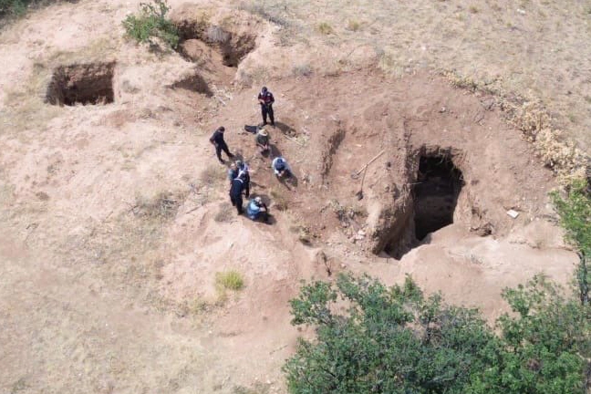 Kaçak kazı faaliyetinin sürdüğüne alınan bilgiler istikametinde yapılan drone uçuşu ile kaçak kazı tespit edilirken; İstihbarat Şube Müdürlüğü ve Kaçakçılık ve Organize Suçlarla Mücadele Şube Müdürlüğü ekipleriyle birlikte bölgede gerçekleştirilen operasyonda, H.S., N.D., Ö.B. ve Y.Y. kazı yaptıkları esnada suçüstü yakalandı. Kazı alanında yapılan incelemelerde; en büyüğü 10 metre çapında ve 15 metre derinliğinde olmak üzere toplam 4 adet çukur tespit edildi. Olay yerinde şüpheliler tarafından kullanılan; 2 adet alan tarama çubuğu, 1 adet kazma, 2 adet kürek, 2 adet metal boru (kazıda kullanıldığı değerlendirilen), 6 adet bidon (toprak taşıma amaçlı), 4 çift eldiven, 21 adet muhtelif malzeme olmak üzere toplam 38 parça delil niteliğindeki malzeme muhafaza altına alındı. Olayla ilgili soruşturma başlatıldı.