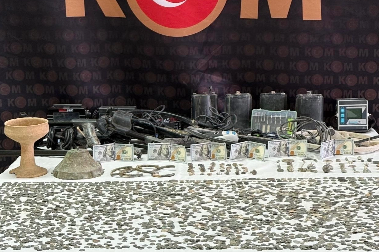 Operasyonda 2 kişi gözaltına alındı. Nizip İlçe Emniyet Müdürlüğüne bağlı kaçakçılık ve organize suçlarla mücadele ekipleri Nizip’te 2 adrese operasyon düzenledi. Operasyonda, 3 bin 127 adet sikke, 110 adet tarihi obje, 1 adet ayaklı çömlek, 6 adet el dedektörü yeraltı algılama radarı, 4 adet el dedektörü bataryası ve görüntüleyicisi 4 adet uyarı ikaz adaptörü, 1 adet ruhsatsız av tüfeği ve 48 adet fişek ele geçirildi. Operasyonda gözaltına alınan 2 şüpheli hakkında yasal işlem başlatıldı.