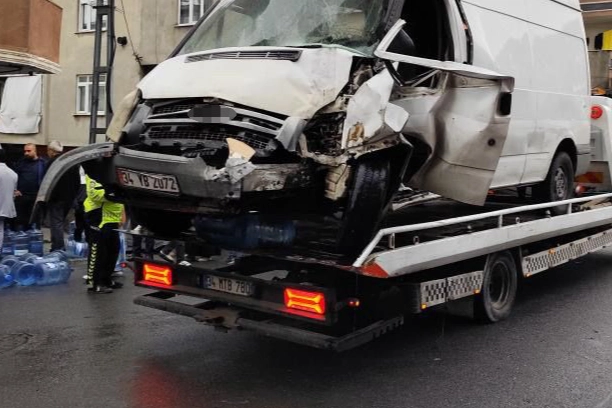 İstanbul Avcılar'da freni boşalan panelvan minibüs cadde üzerinde bir dükkana daldı.