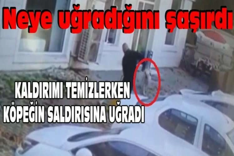 Olay, dün öğle saatlerinde Nilüfer'e bağlı Görükle Mahallesinde meydana geldi. Bir iş yerinin güvenlik kamerasına yansıyan görüntülerde, esnaf, kaldırımı süpürdüğü sırada, yerde yatan köpek adamın bacağını ısırarak kaçmaya başladı. Neye uğradığını şaşıran esnafın hafif şekilde yaralandığı öğrenildi.