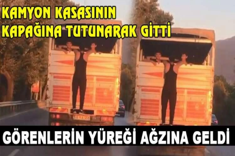 O anları gören diğer sürücüler korkuyla izlerken bir yandan da cep telefonu ile kayıt altına aldılar. Olay, merkez Osmangazi ilçesi Yakın Çevre Yolu üzerinde meydana geldi. Edinilen bilgiye göre, bir kişi kamyon kasasının kapağına tutunarak seyretti. Canını hiçe sayan bu kişiyi gören diğer sürücüler gözlerine inanamazken o tehlikeli anlar cep telefon kamerasına yansıdı.