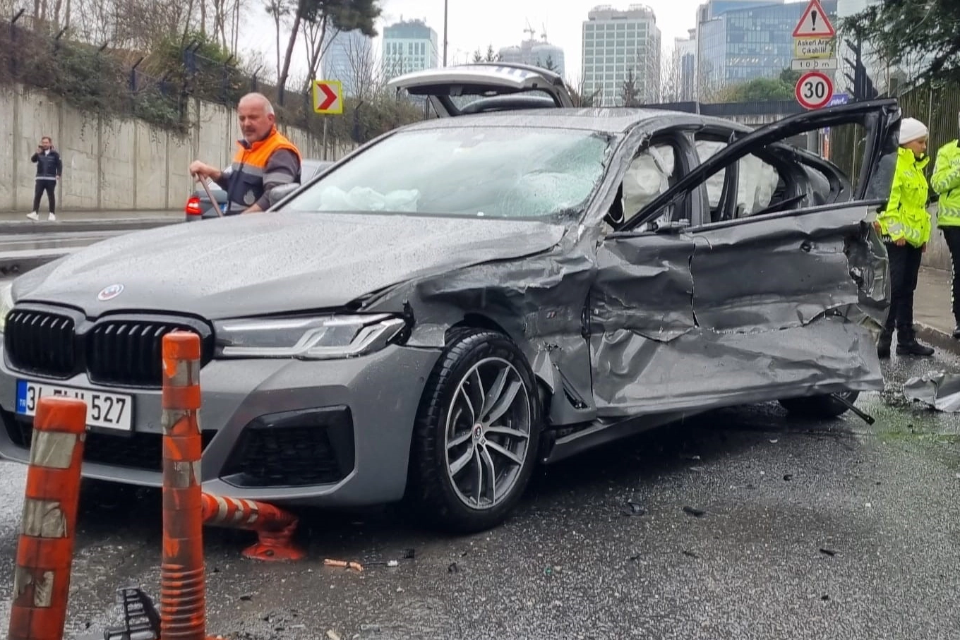Sarıyer’de yağmur nedeniyle direksiyon hakimiyetini kaybeden kamyon sürücüsü, refüjü aşarak yolun karşısından gelen lüks otomobile çarptı.