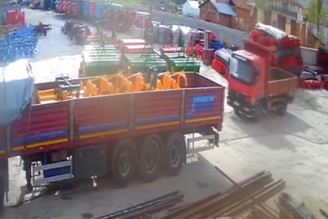 O anlar iş yerinin güvenlik kamerası tarafından saniye saniye kaydedildi. Görüntülerde kamyonetin bir anda ileriye doğru hareket ettiği ve tıra çarptığı anlar net şekilde görülüyor.