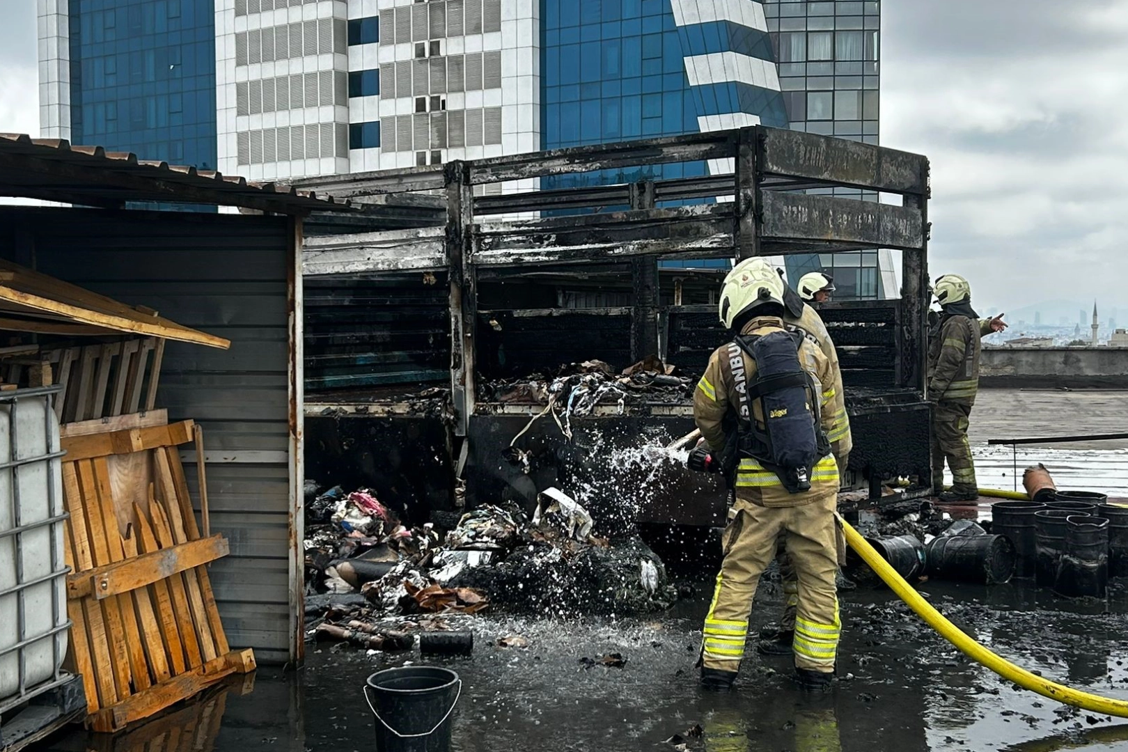 İstanbul'un Bayrampaşa ilçesinde sanayi sitesinin otoparkında park halindeki kamyonet yanarak kül oldu.