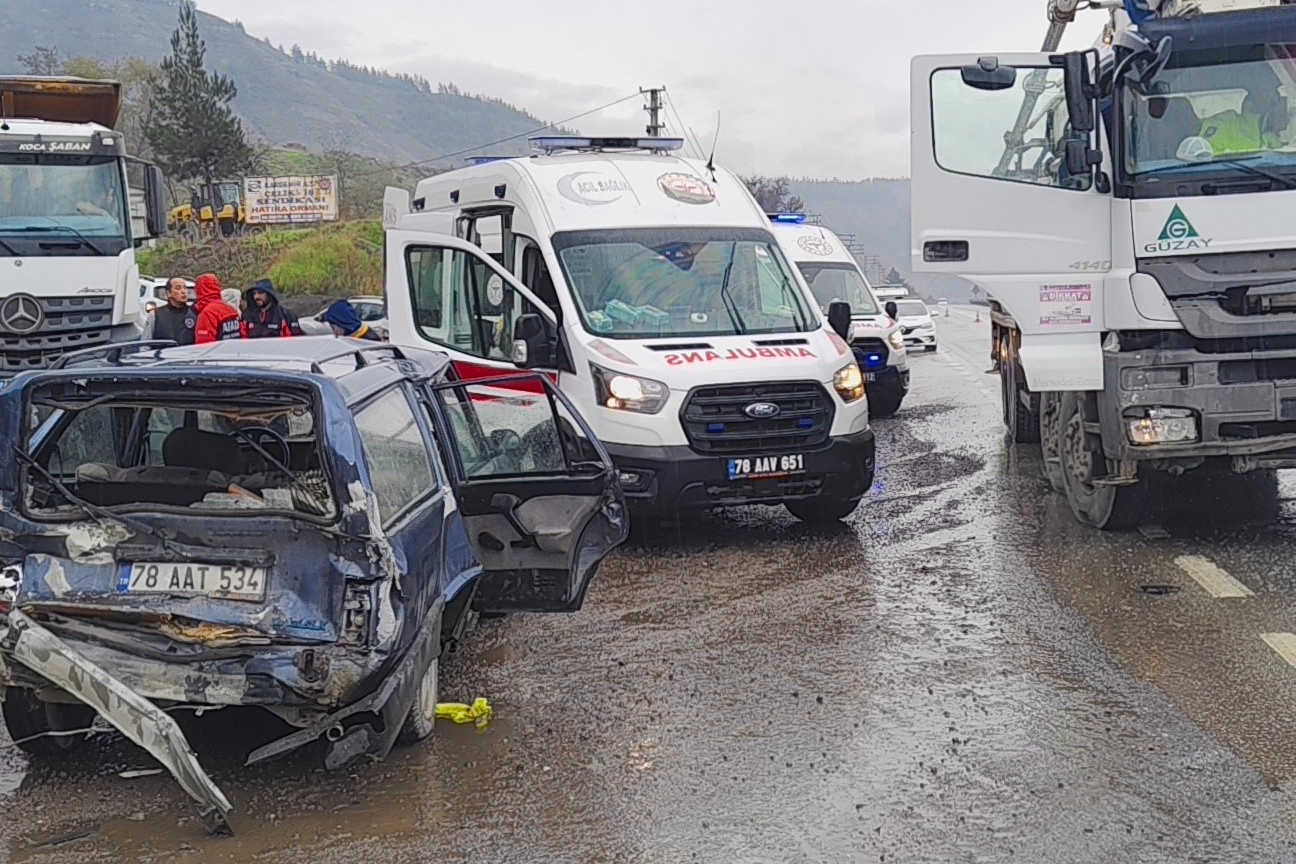 Karabük'te beton mikseri ile otomobilin çarpışması sonucu 1'i çocuk olmak üzere 5 kişi yaralandı.