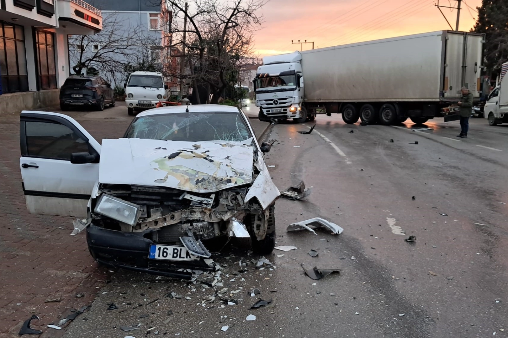 Edinilen bilgiye göre, sürücüsünün direksiyon hâkimiyetini kaybettiği tır, karşı şeride geçerek 16 BLK 279 plakalı otomobile çarptı. Çarpmanın etkisiyle otomobilde bulunan 3 kişiden 2'si yaralandı.