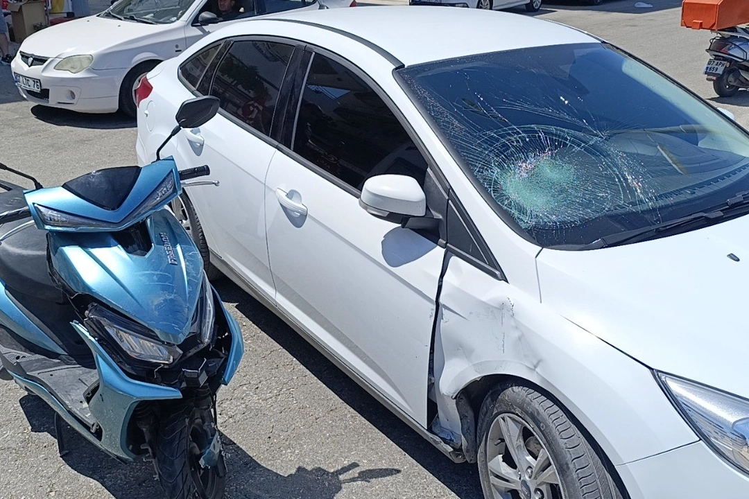Antalya'nın Manavgat ilçesinde otomobile çarpan motosiklet sürücüsü havaya savruldu.