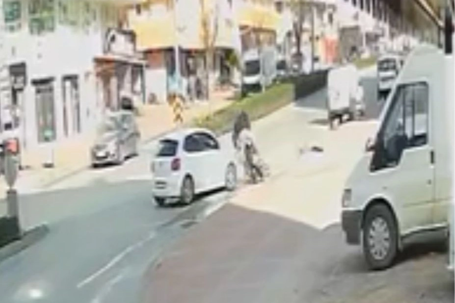 Otomobile çarparak yola savrulan ve başında kask bulunmayan sürücü o anda başka bir aracın altında kalmaktan şans eseri kurtuldu. Yaşananlar güvenlik kamerasına yansıdı. Kaza; Yayla Mahallesi Remzi Güven Caddesi'nde yaşandı.